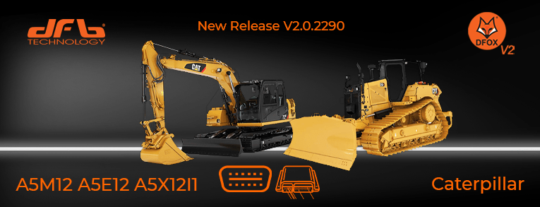 With the new DFOX® V2 2.0.2290 update, we are introducing OBD drivers for reading and programming CATERPILLAR A5M12, A5E12 and A5X12I1 control units installed on construction and earth-moving machinery: